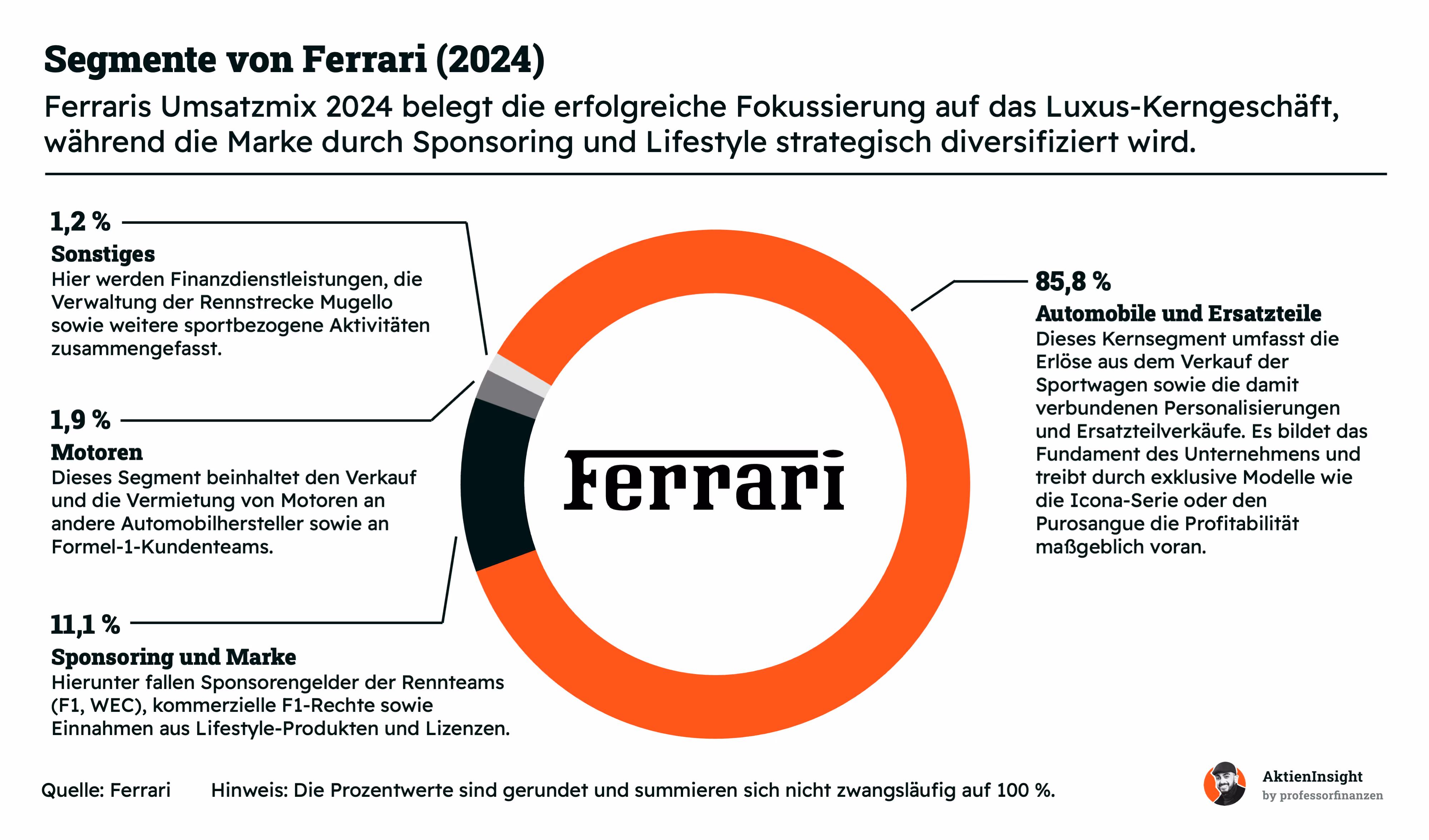 Dieses Segment ist das emotionale Herzstück und umfasst alle Einnahmen aus dem Rennsport sowie der Marke selbst. Hier fließen die Sponsorengelder der Formel 1 Teams und der Langstrecken-Weltmeisterschaft WEC ein. Nach den jüngsten Erfolgen in Le Mans hat die Marke hier nochmals an Strahlkraft gewonnen.