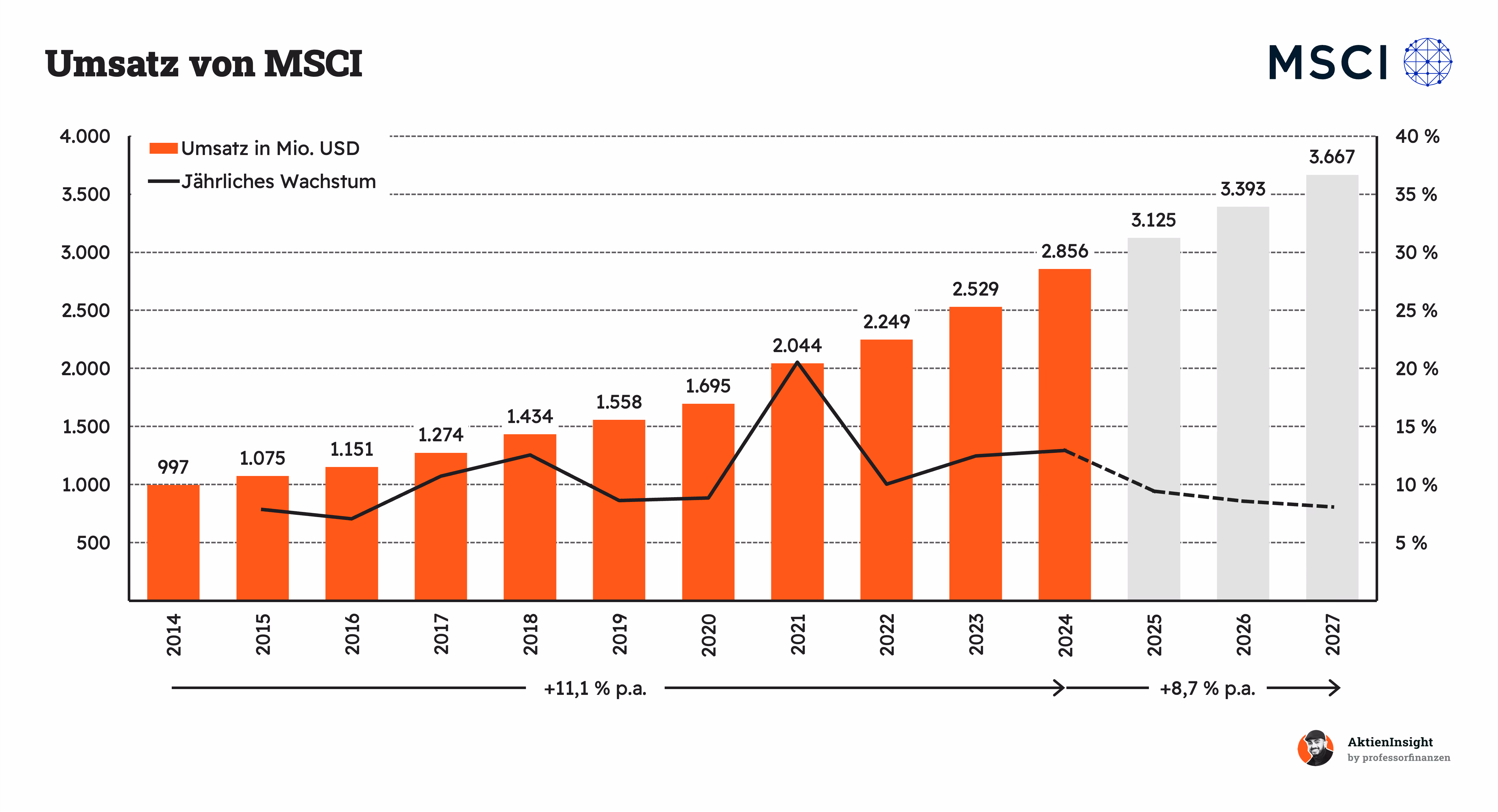 Der globale Markt für Finanzmarktdaten und -analysen wächst jährlich um etwa 6,6 %. Grund dafür sind die steigende Komplexität der Finanzmärkte und der Bedarf an präzisen Daten für fundierte Investitionsentscheidungen. In unsicheren Zeiten steigt die Nachfrage nach zuverlässigen Daten noch mehr. MSCI profitiert von diesem Trend. Sie sind gut positioniert, um von der wachsenden Bedeutung passiver Anlageinstrumente und nachhaltiger Investitionen zu profitieren.