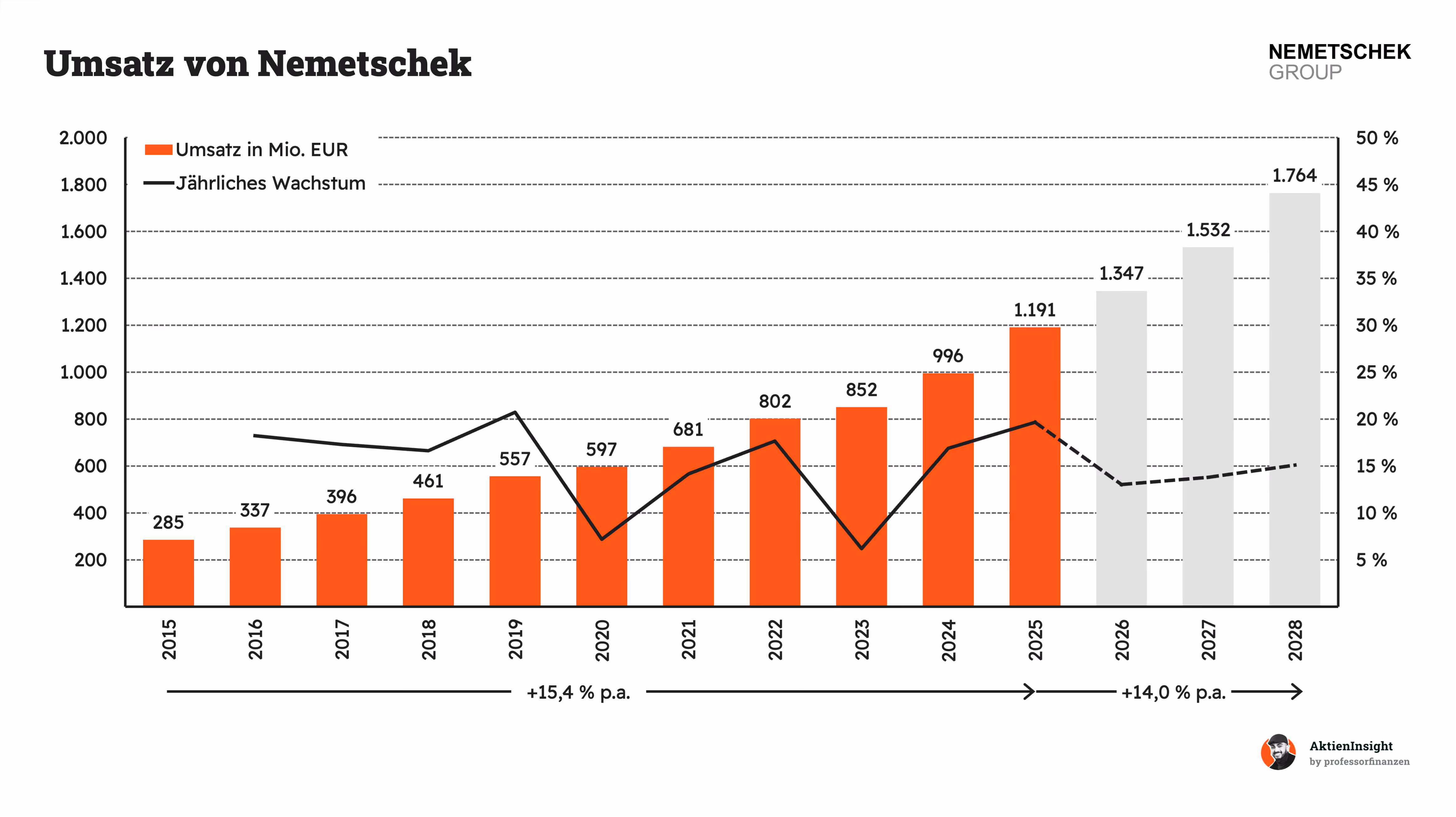 - Wir gehen von 10,0 % organischem Umsatzwachstum aus sowie zusätzlichen 1,5 % durch Übernahmen.